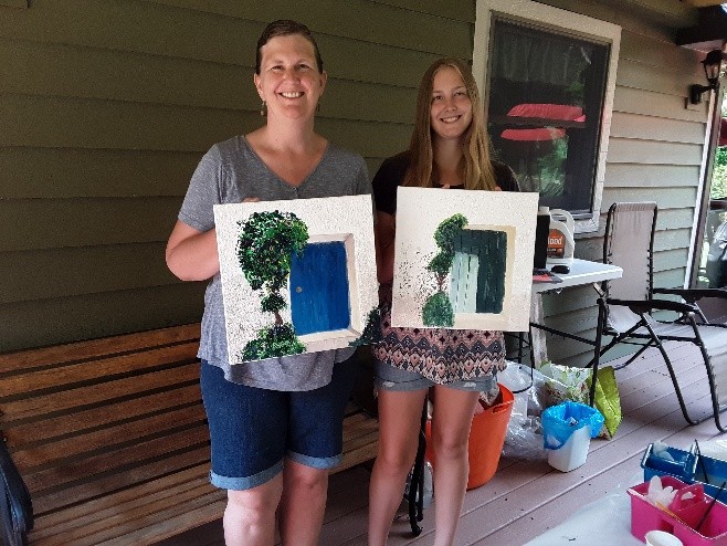 E-mail info@sharonsartwork.com or text (240) 321-5165 to reserve your group of 6 or less for an outdoor paint party with your friends. The view is beautiful and the deck is covered. This will be flow art lesson, unless you prefer a painting of something more traditional can be done as well. It’s a lot of fun for a 2 hour session!
